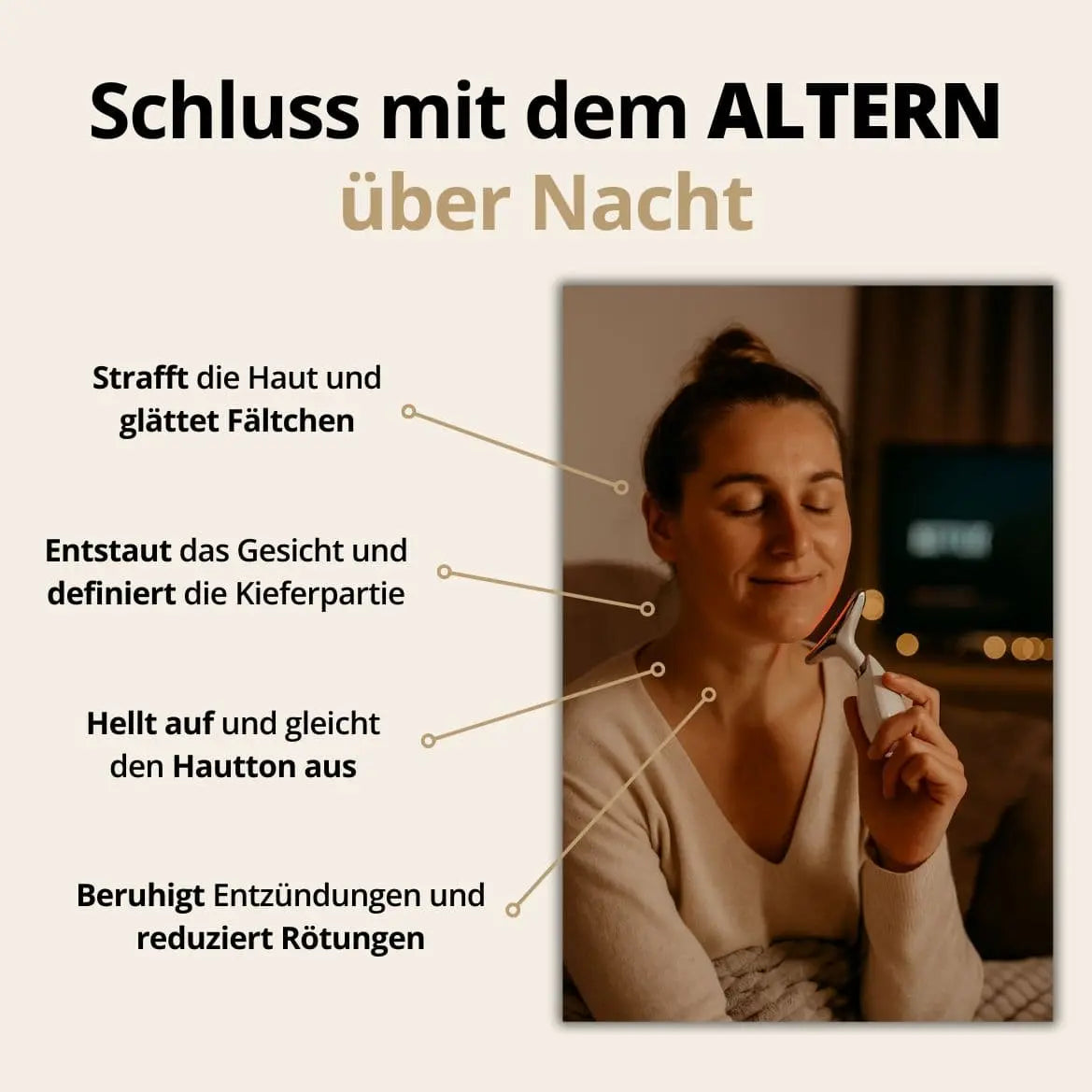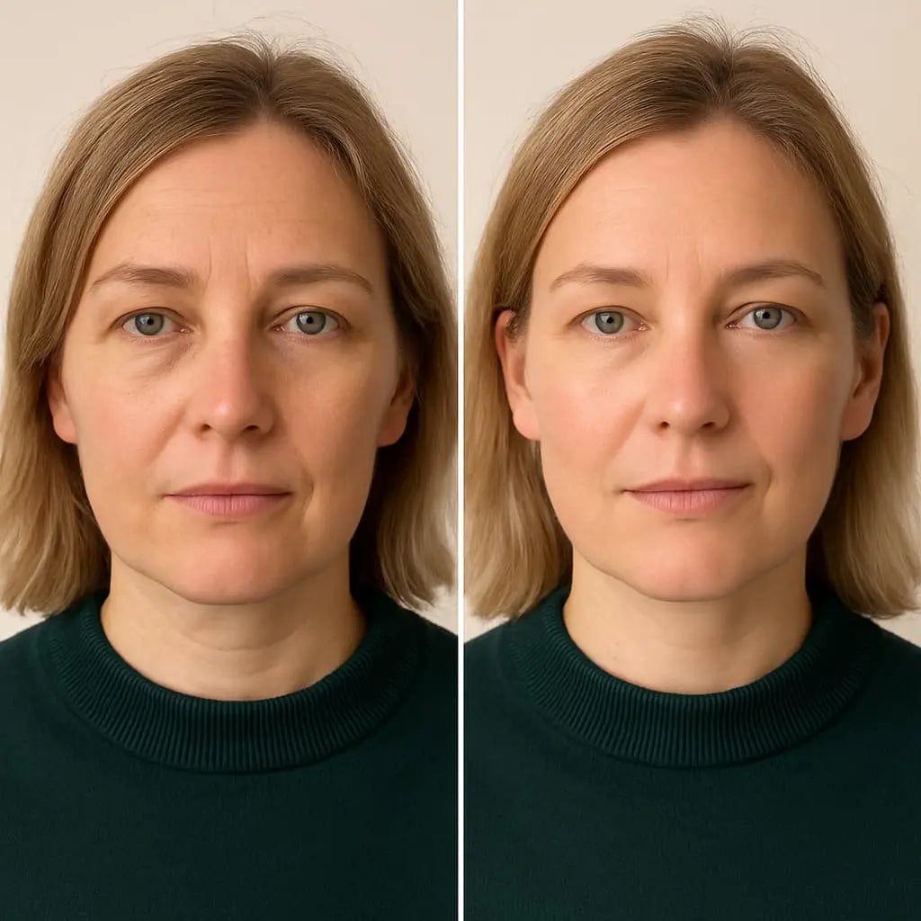 Some users notice reduced puffiness and a calming effect after the first use. Visible improvements usually begin within 2–3 weeks, with more significant results — like firmer skin and fewer fine lines — seen by 6–8 weeks. The key is daily consistency (just 5–7 minutes per session).